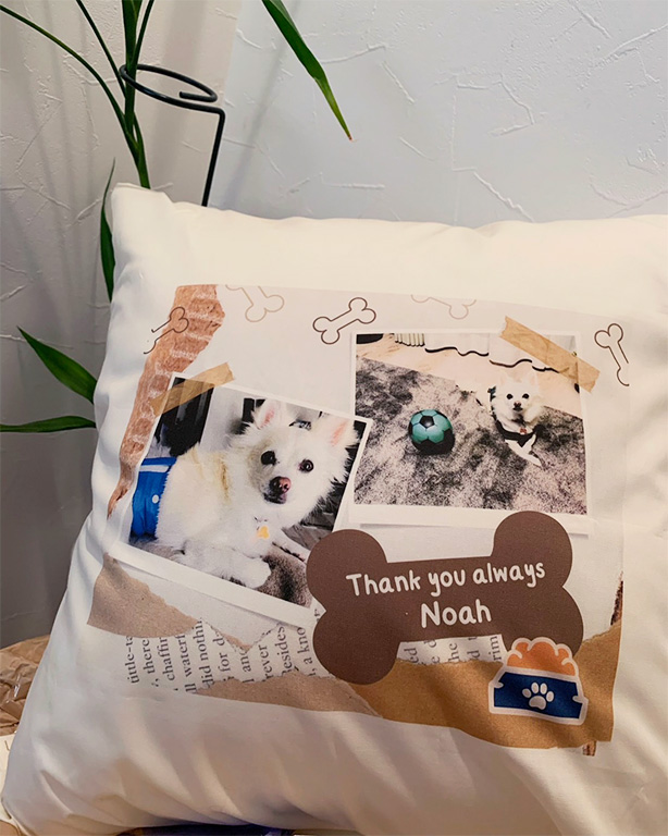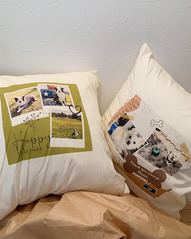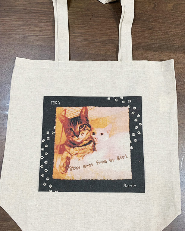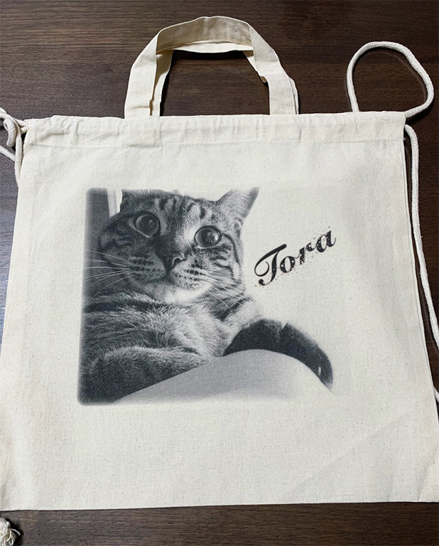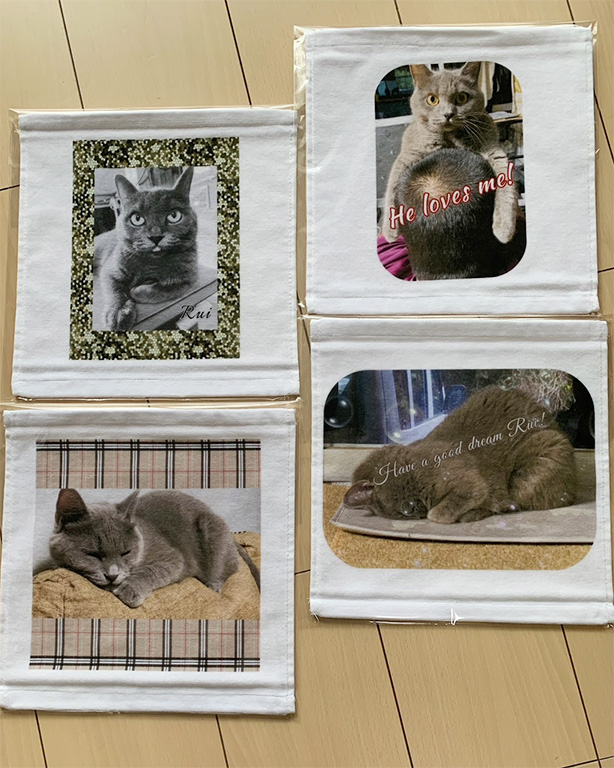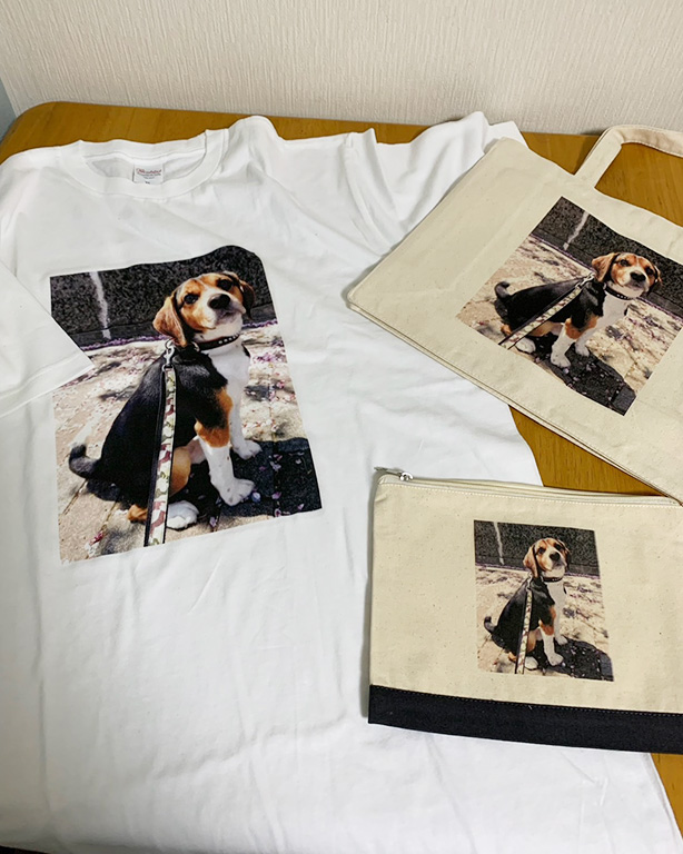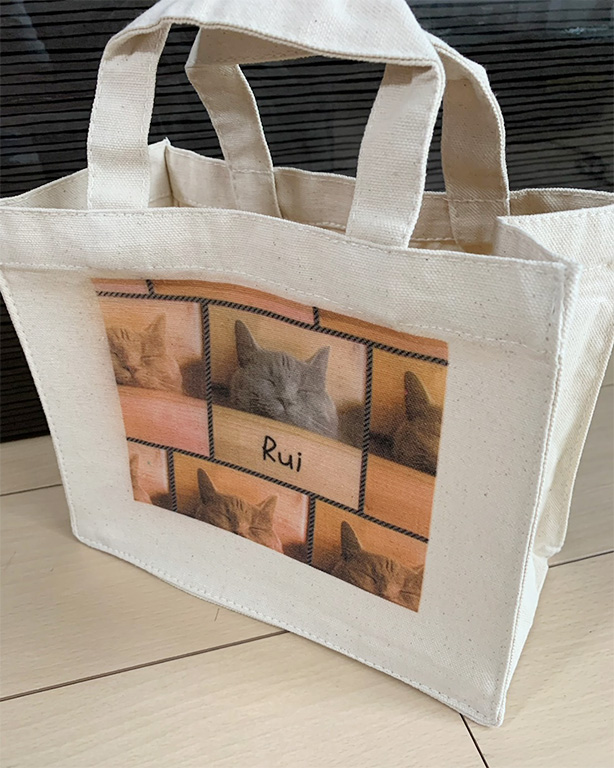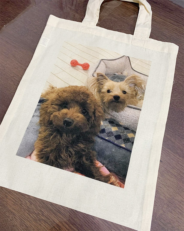 ペットの写真入りのバックや作りました。 スマホに残っていた写真を送るだけで、簡単にできました! 次回はタペストリーを作ってもらいたくて、写真の選別をしています!
