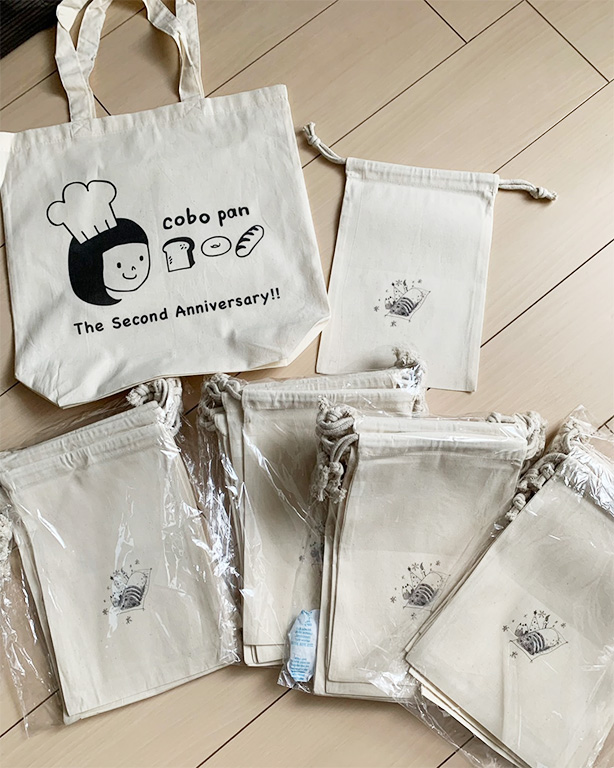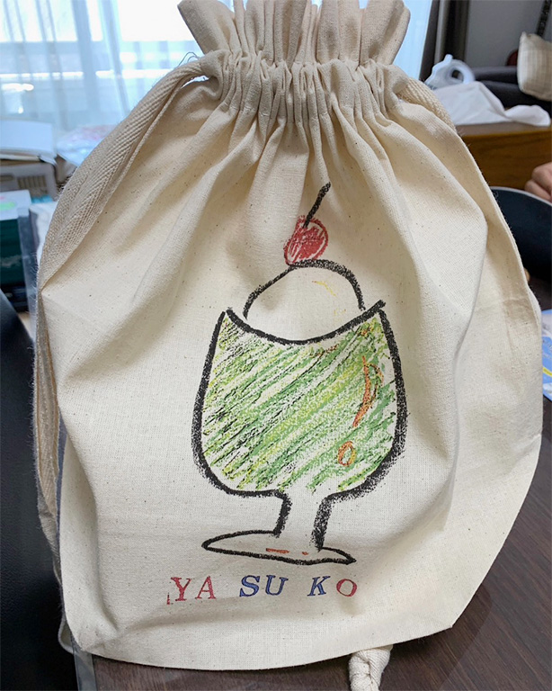 お店のロゴを入れて巾着を作りました!お客様にも大好評で、素晴らしいブランディング効果がありまた!